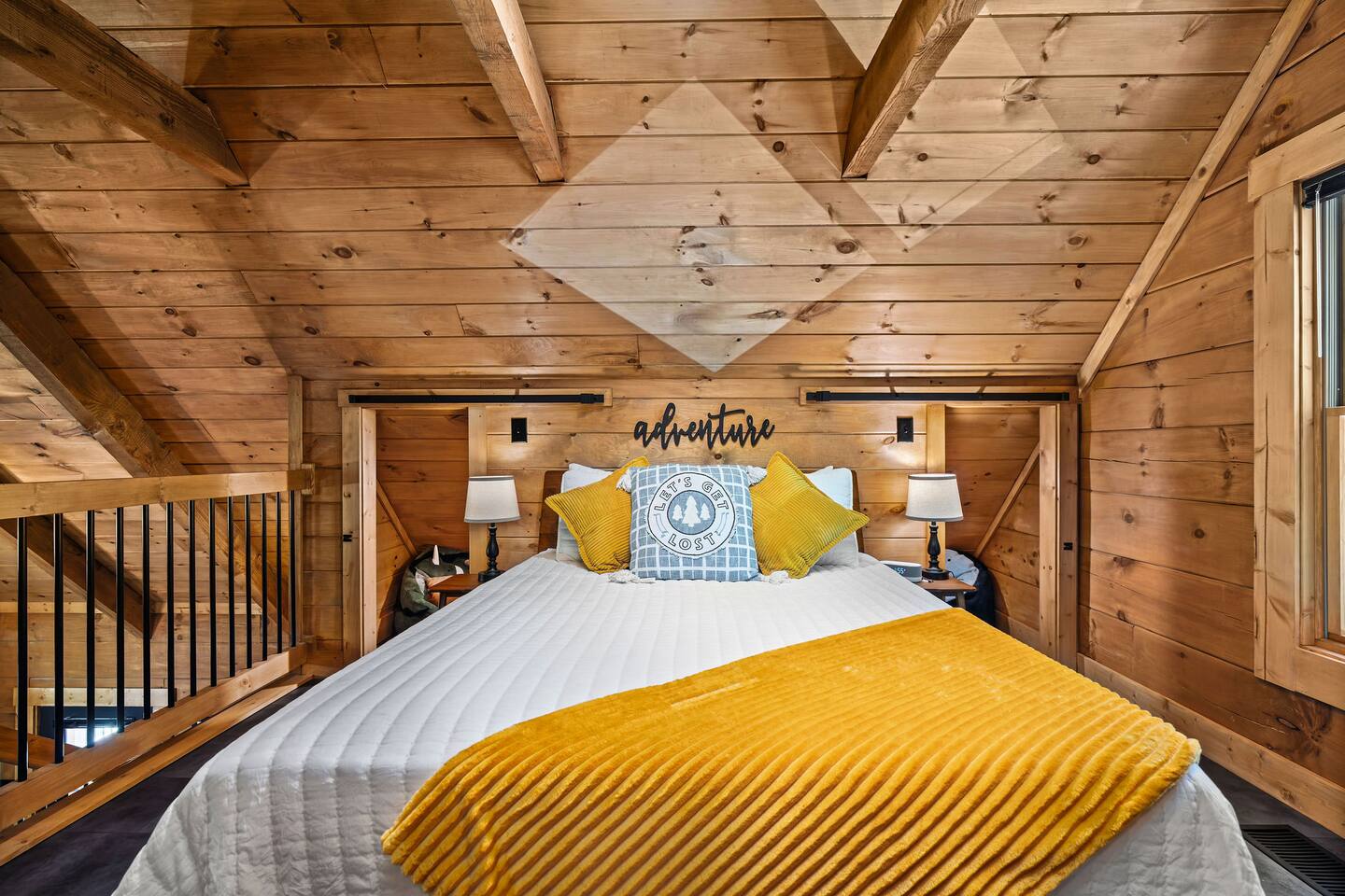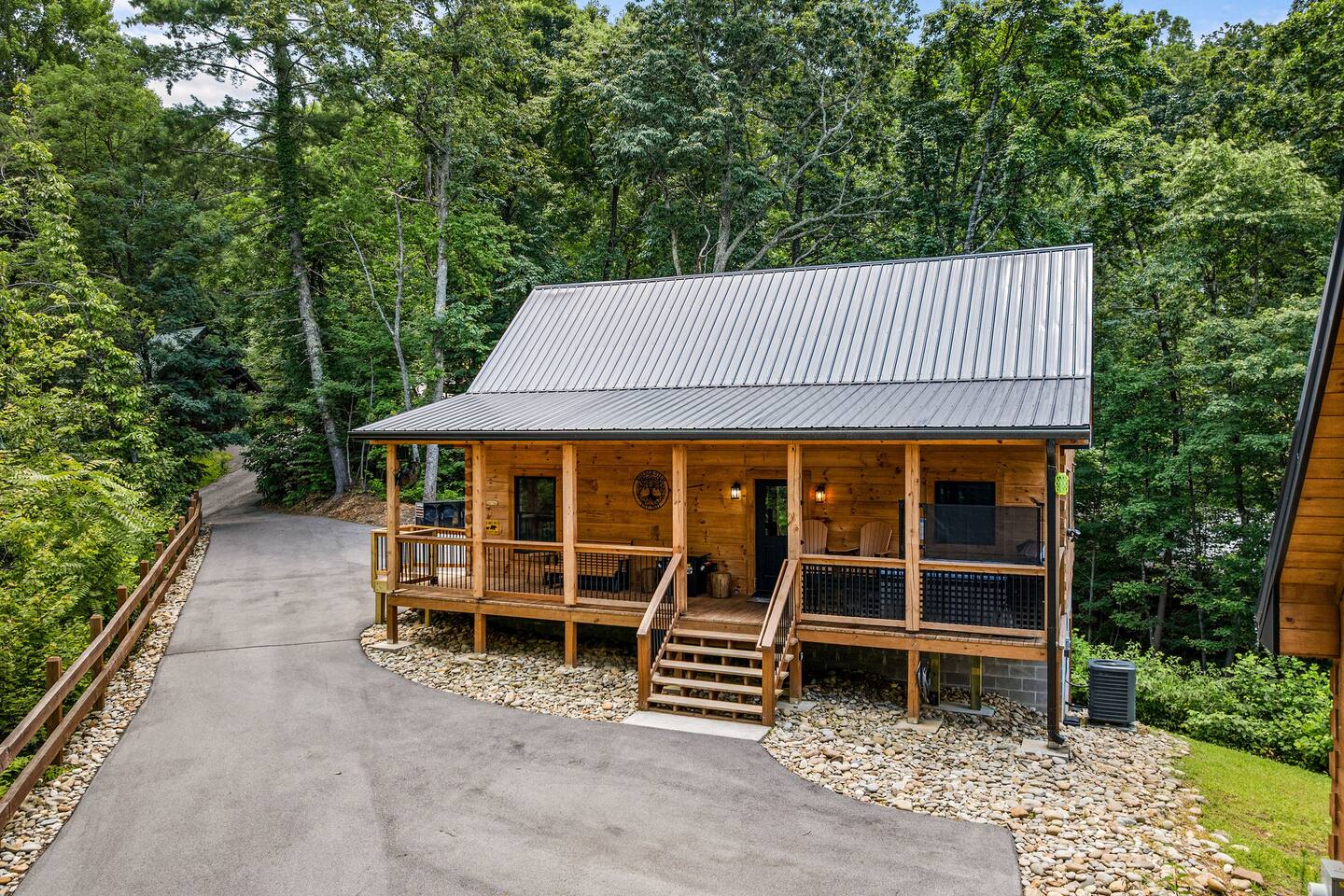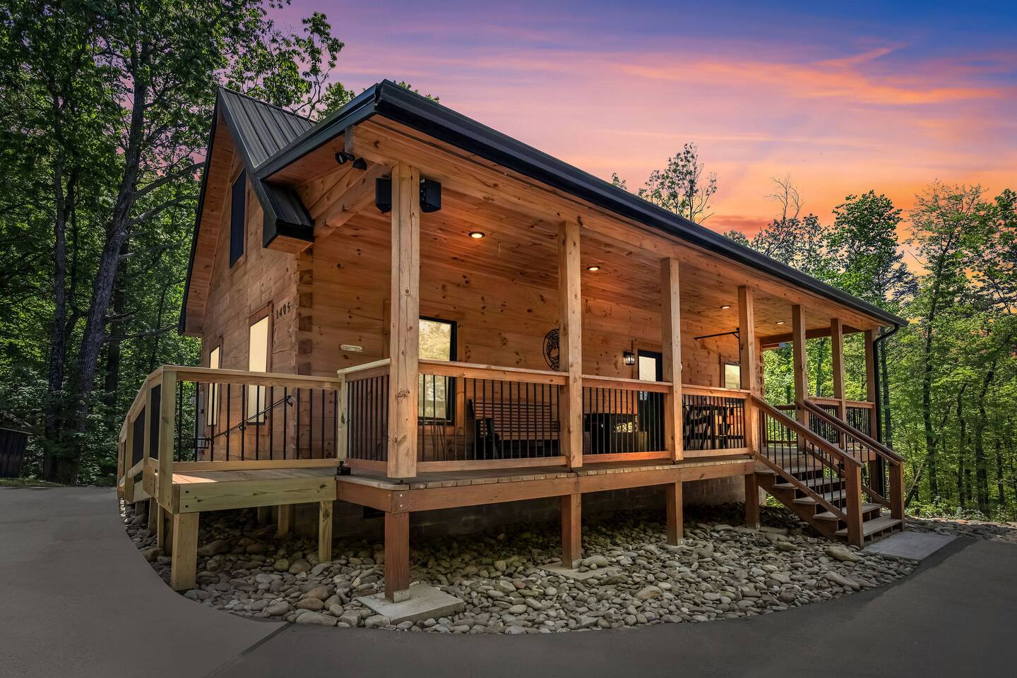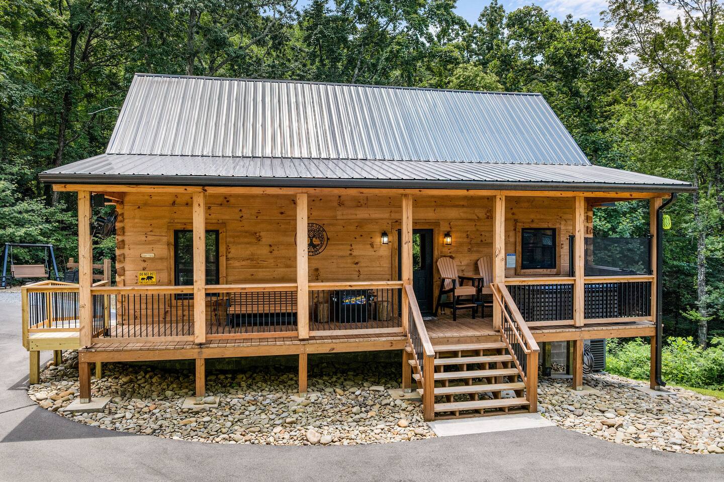 The Space Bedrooms: Bedroom 1: King Bed Bedroom 2: Queen Bed Loft: Queen Bed Sleeper Sofa in Living Room Bonus Space for Kids: Hidden Loft with an Arcade Classic Games Console Outdoor Living: Fire Pit (bring your own wood) Spacious Porch Deck with Rocking Chairs Hot Tub Indoor Comforts: 4 Smart TVs Electric Fireplace Board Games Ceiling Fans Central A/C & Electric Heat Fully Equipped Kitchen: Refrigerator, Stove, Oven & Dishwasher Dishware & Flatware Microwave & Toaster 2-in-1 Keurig & Drip Coffee Maker Water Filter General Amenities: Wi-Fi Washer & Dryer 2 Hair Dryers Towels & Linens Provided Parking: Driveway for 3 Vehicles FAQ: Features both a Flight of Stairs and a Handicap Ramp for Accessibility