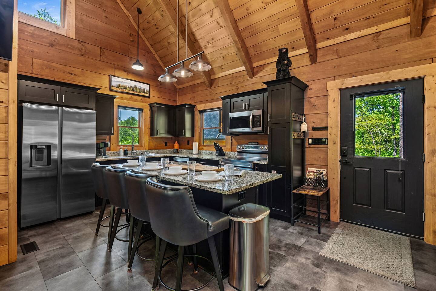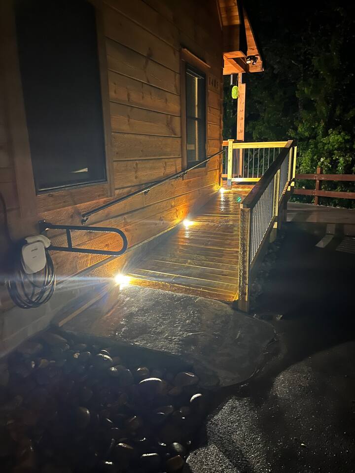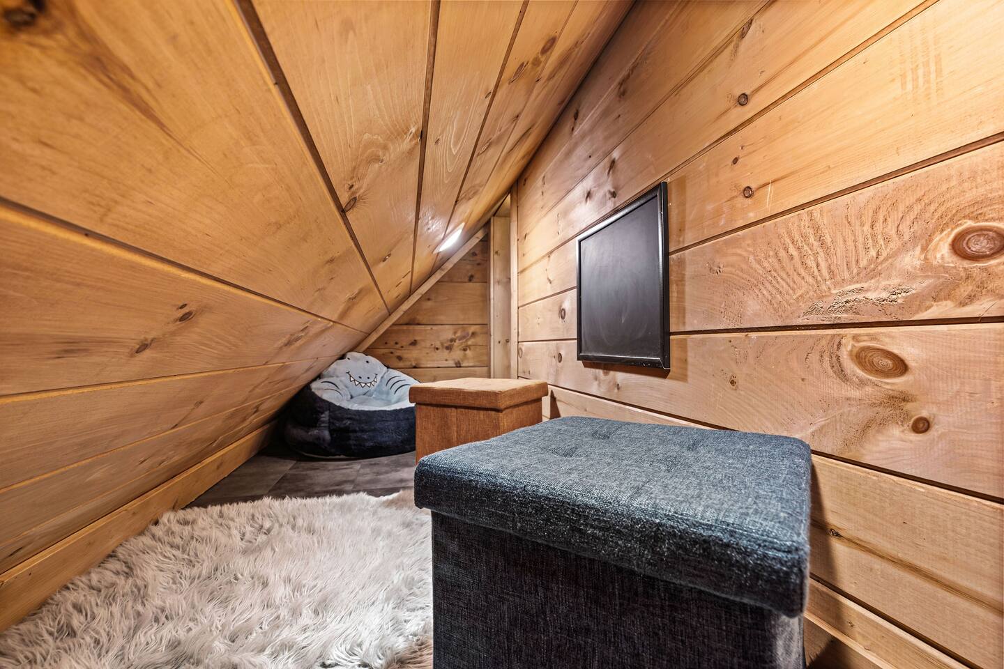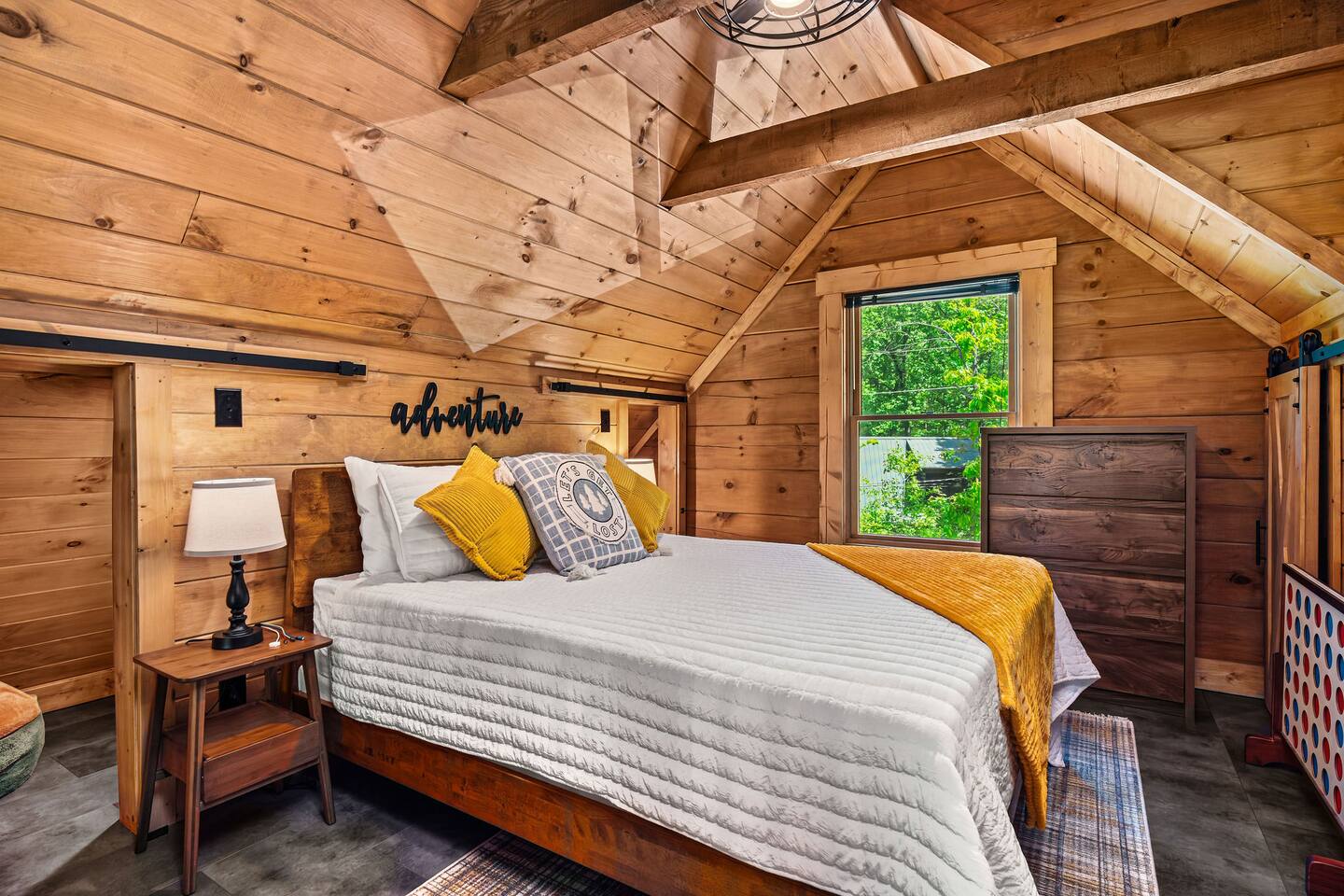 The Space Bedrooms: Bedroom 1: King Bed Bedroom 2: Queen Bed Loft: Queen Bed Sleeper Sofa in Living Room Bonus Space for Kids: Hidden Loft with an Arcade Classic Games Console Outdoor Living: Fire Pit (bring your own wood) Spacious Porch Deck with Rocking Chairs Hot Tub Indoor Comforts: 4 Smart TVs Electric Fireplace Board Games Ceiling Fans Central A/C & Electric Heat Fully Equipped Kitchen: Refrigerator, Stove, Oven & Dishwasher Dishware & Flatware Microwave & Toaster 2-in-1 Keurig & Drip Coffee Maker Water Filter General Amenities: Wi-Fi Washer & Dryer 2 Hair Dryers Towels & Linens Provided Parking: Driveway for 3 Vehicles FAQ: Features both a Flight of Stairs and a Handicap Ramp for Accessibility