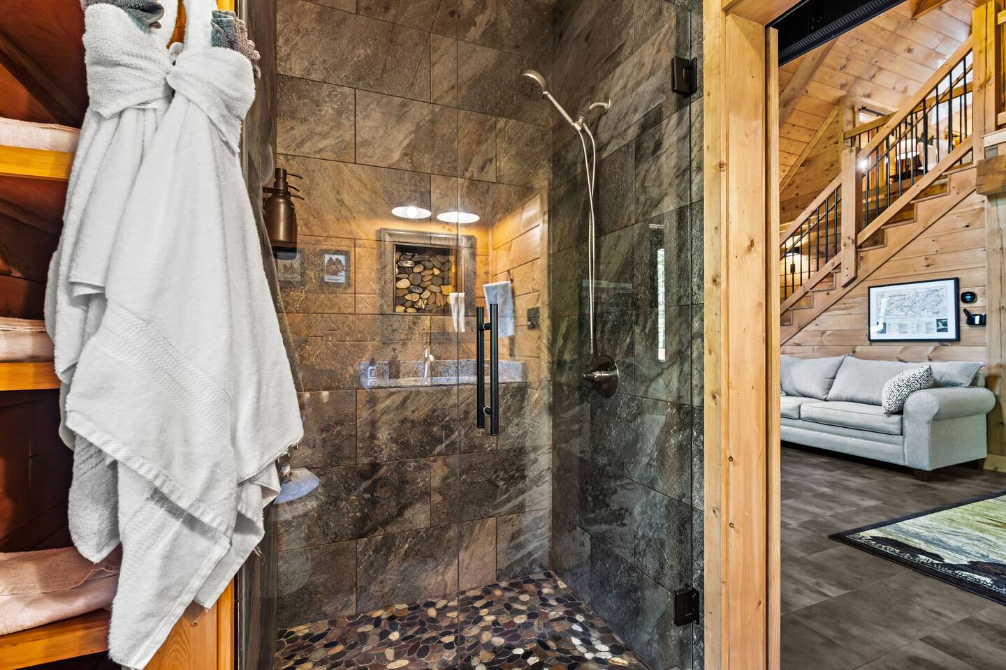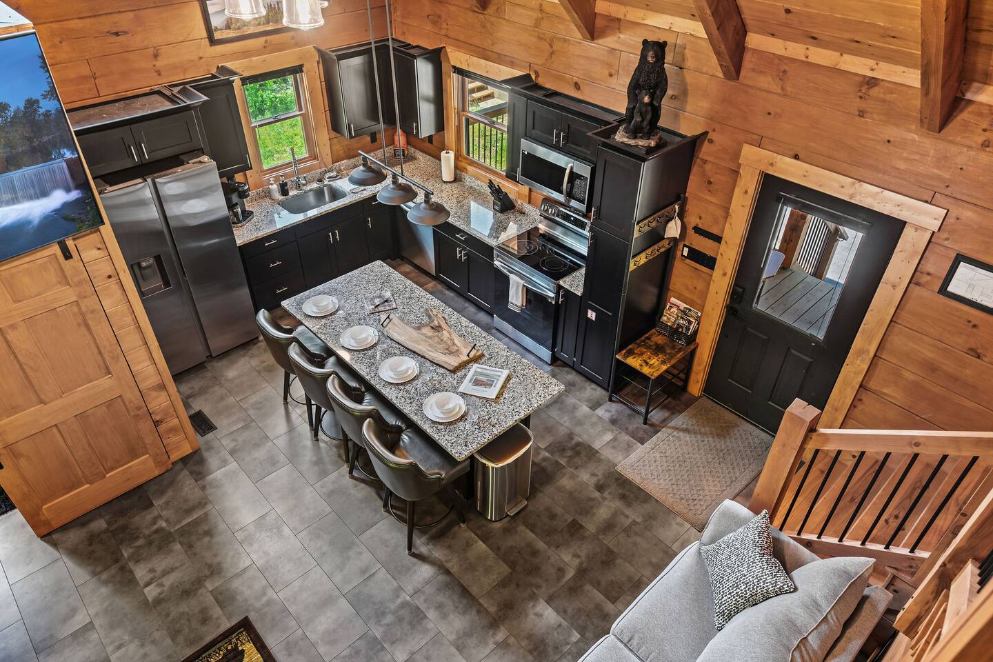 Mountain Driving Disclaimer: Please note: Access to the cabin involves approximately 5 minutes of mountain driving on narrow, winding roads. Guests should drive cautiously, especially during inclement weather or at night. Accessibility Disclaimer: While the cabin includes some accessibility features, it is not fully wheelchair accessible. There is a wide, lighted ramp to the entrance, and two bedrooms plus a full bathroom on the main level. The third bedroom and an additional bathroom are located in the loft. The main-level bathroom is not attached to either bedroom and is approximately 30 feet away. It has a standard-height toilet and a walk-in shower with a small step to enter. The shower does not include seating or grab bars but is equipped with a removable shower head. Wildlife Disclaimer: As the cabin is located in a mountain setting, you may encounter local wildlife such as bears, raccoons, deer, and insects. Please take proper precautions—keep food secured, do not feed animals, and supervise children when outdoors. Parking: The cabin shares a driveway with another property on Ridgefield Drive. Please limit parking to no more than three vehicles and ensure you do not block access to the neighboring cabin.